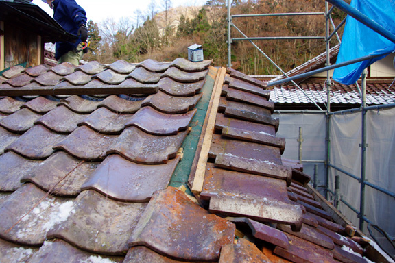 「東側破風板上部の袖瓦がのりました。この合わせ目も滅多に見ることが出来ません」
