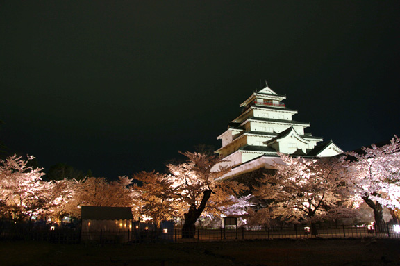 「桜色の霞に、真っ白の鶴ヶ城が守られています」